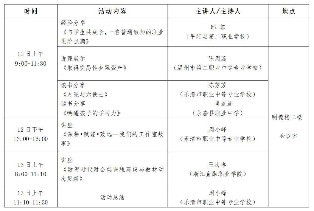 关于举行温州市周小峰“名师送教”工作室第11次活动的通知