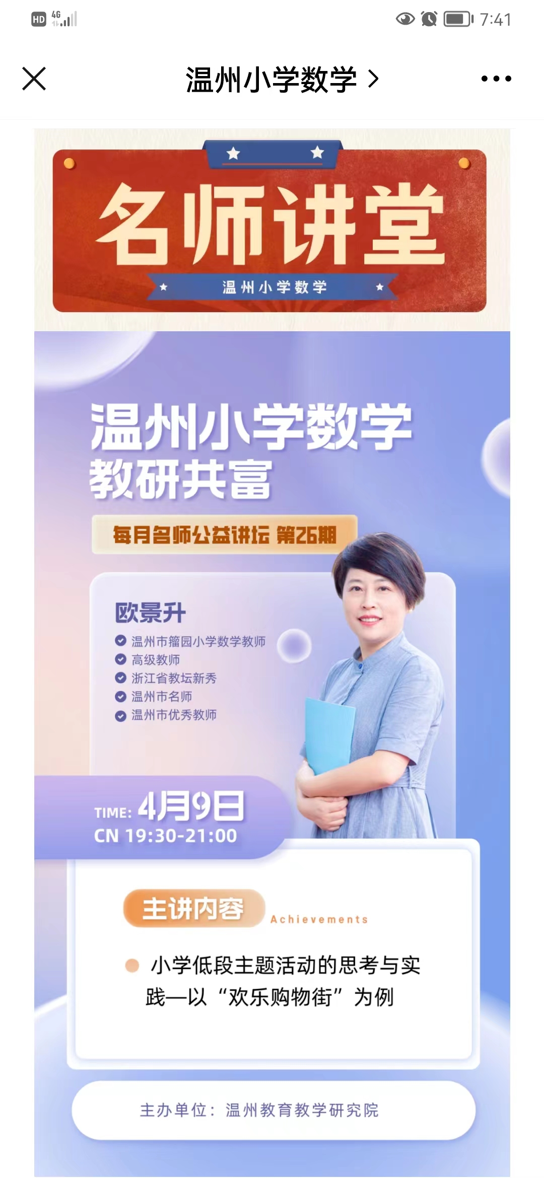 关于举行温州市欧景升“名师送教”工作室第17次活动的通知