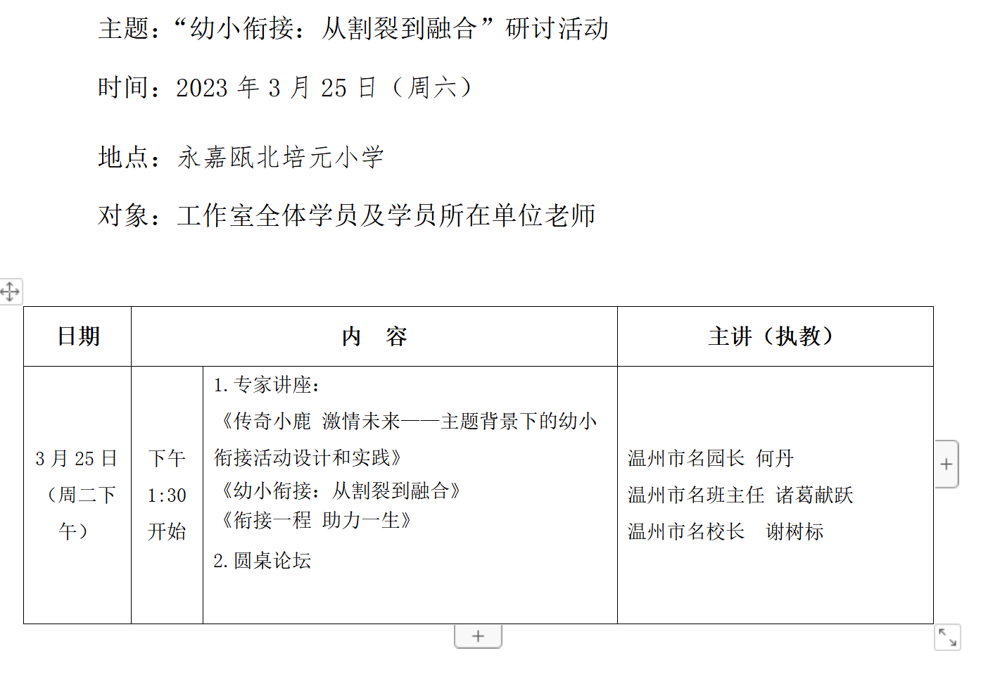 关于举行温州市谢树标“名师送教”工作室第4次活动的通知