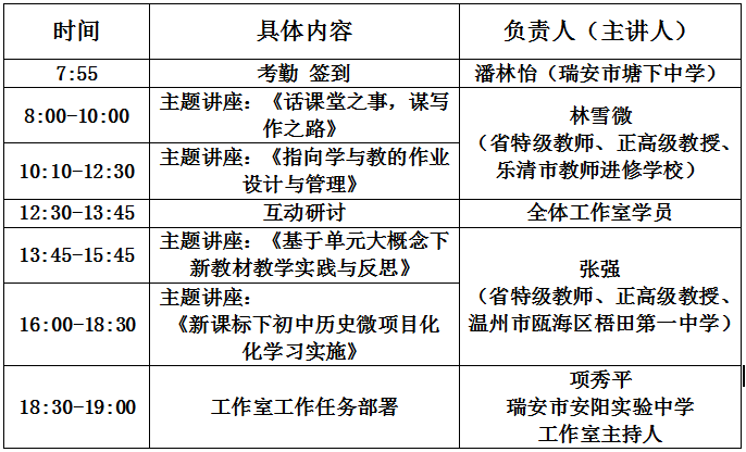 为了发挥名师工作室的示范引领作用,进一步深化新课程标准理念,促进瑞安文成两县道德与法治学科教师的专业成长,经研究,决定举办温州市项秀平送教名师工作室第5次活动。现将具体事项通知如下: